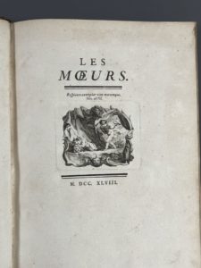 [TOUSSAINT (François-Vincent)] Les moeurs. S.l., s.n., 1748. In-4, [16] f., 474 p., veau fauve époque, dos à 5 nerfs, pièce de titre maroquin rouge, caissons ornés, triple filet doré bordant les plats, double filet aux coupes, roulette...