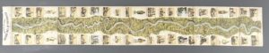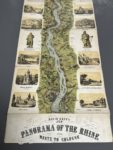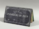 lithographiée en couleurs, 176 x 28 cm., pliée sous couv. cartonnée éditeur 17 x 29 cm. (coupes frottées, le f. de titre déchiré en 2 parties, le 1er segment séparé des autres, lég. traces de poussière). Belle représentation en couleurs du cours du Rhin, bordée de 48 vignettes montrant des lieux, personnages et édifices.