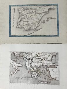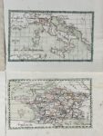 [Manuscrit]. [Atlas]. Ensemble de 10 cartes manuscrites à l'encre et aquarelle sur papier vergé, 1826. 10 feuillets d'environ 31 x 46 cm. marges incluses (salissures). Travail scolaire contenant une mappemonde, et des cartes de France, Italie,...