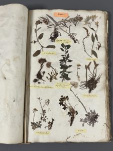 notice manuscrite, l'amateur indique ses intentions lors de la composition de la collection, qui n'a pas de vocation scientifique mais constitue un support aux souvenirs. Une lettre manuscrite datée de 1863 est jointe, qui comporte quelques notes botaniques. Le volume renferme 35 planches et sur chacune sont montés plusieurs spécimens. Les planches portent en titre le nom de la ville ou de la région, et pour un très grand nombre, une autre étiquette précise le lieu de récolte de chacune. Dans l'ordre du volume les lieux visités sont : Allemagne (Mannheim, Worms, Francfort..., 4 planches) ; Suisse (9 pl.) ; Savoie (2 pl.) ; Basses-Alpes, Var (1 pl.) ; Piémont (1 pl.) ; Le Croizic, Pornic, Noirmoutier (3 pl.) ; Italie et Vatican (15 pl.).