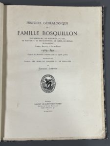 [Généalogie]. COURTAUX (Théodore). Histoire généalogique de la famille Bosquillon, d'Aubercourt, de Bouchoir, Du Fay, de Fontenay, de Frescheville, de Jarcy, de Jenlis, de Marigny, Picardie, Beauvaisis et Ile-de-France, 1464-1892.. Paris,...