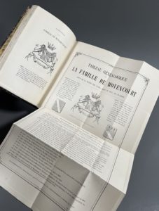 jusqu'en 1869, avec tableaux généalogiques et preuves... Paris, l'auteur, 1869. Fort in-8, 392 p., frontispice, 2 tabl. généal. dépliants h.-t., fig. d'armoiries dans le texte, demi-chagrin vert bronze époque, dos à nerfs, titre doré (coins émoussés, rouss. sur un tableau). Provenance : Jean Tremblot de La Croix (1893-1964), conservateur à la Bibliothèque de l'Institut de France, historien, héraldiste ; par descendance.