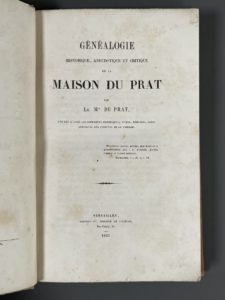 [Généalogie]. DU PRAT (Antoine-Théodore). Généalogie historique, anecdotique et critique de la maison Du Prat, par le Mis Du Prat, rédigée d'après les documents historiques... conservés aux archives de la famille. Versailles, Dagneau, 1857....