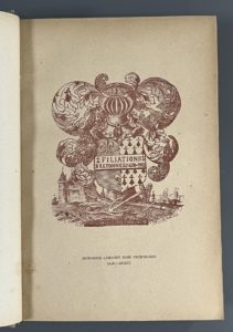 [Généalogie. Héraldique]. [Bretagne]. FROTIER DE LA MESSELIÈRE (Henri). Filiations bretonnes, 1650-1912. Recueil des filiations directes des représentants actuels des familles nobles, de bourgeoisie armoriée ou le plus fréquemment alliées à...