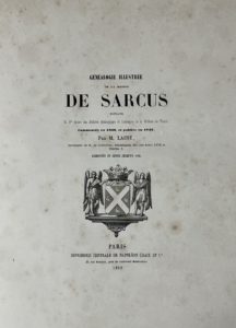 [Généalogie]. LAINÉ (Louis). Généalogie illustrée de la maison de Sarcus... commencée en 1830, et publiée en 1843... augmentée et revue jusqu'en 1858. Paris, Chaix, 1858. Fort in-4, 270 p., 82 pl., demi-chagrin noir époque, dos à...
