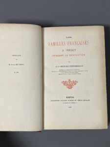 [Généalogie]. L'ESTOURBEILLON (Régis de). Les familles françaises à Jersey pendant la Révolution. Nantes, Impr. Forest & Grimaud, 1886. In-8, demi-chagrin brun, dos à nerfs (dos frotté). Tiré à petit nombre, celui-ci n° 119 et nominatif...