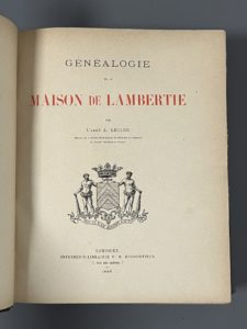 [Généalogie]. LECLER (A.). Généalogie de la maison de Lambertie. Limoges, Ducourtieux, 1895. Deux parties en un fort in-4, 178-CCCXXII p., fig., pl., demi-basane brune à coins, dos lisse, pièce de titre (frott. légers aux mors). Tiré à petit...