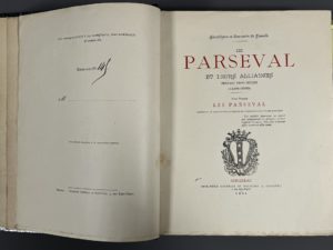 [Généalogie]. [PARSEVAL (Frédéric Ferdinand Joseph de)]. Généalogies et souvenirs de famille. Les Parseval et leurs alliances pendant trois siècles (1594-1900). Bergerac, impr. de J. Castanet, 1901. 3 volumes in-4, demi-percaline vert bronze,...