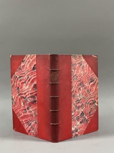 couleurs, demi-chagrin rouge à coins, dos à 5 nerfs, titre doré, tête dorée (dos et coins brunis, 3 coins frottés, poussière en marge de qq. pl., un f. en déficit - blanc ou faux-titre - avant le titre). Provenance : Jean Tremblot de La Croix (1893-1964), conservateur à la Bibliothèque de l'Institut de France, historien, héraldiste ; par descendance.