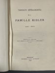 [Généalogie]. [RISLER (Jérémie)]. Tableaux généalogiques de la famille Risler, 1481-1910. Nouvelle édition revue et augmentée... Mulhouse, Impr. Meninger, 1910. In-8, p.[III]-XXXII, 229 p. dont des tableaux, 6 planches d'armoiries en...
