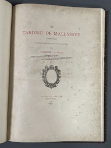 [Généalogie]. TARDIEU (Ambroise). Les Tardieu de Maleyssye (1090-1895). 2e éd. revue et augmentée. Clermont-Ferrand, s..n., 1895. In-4, 48 p., ill., demi-chagrin havane, dos à nerfs, auteur et titre dorés (titre bruni). Provenance : Jean...