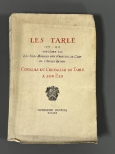 [Généalogie]. TARLÉ (Antoine de), et al. Les Tarlé, 1525-1939, précédés par les Idées morales d'un maréchal de camp de l'ancien régime, conseils du chevalier de Tarlé à son fils ; [par le colonel Antoine-Adolphe-Alexandre-Paulin-Marie...