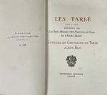 de Tarlé ; édité par Antoine de Tarlé, Ferdinand de Tarlé, Jacques de Tarlé, Paulin de Tarlé]. Roanne, Impr. de Souchier, 1945. In-8, 142-49 p., [2] f. (table, errata), [3] f. (tableaux), pl., broché, à toutes marges (poussière sur la couv., qq. brunissures). Un des 90 exemplaires hors commerce sur vidalon, celui-ci n° 16. Provenance : Jean Tremblot de La Croix (1893-1964), conservateur à la Bibliothèque de l'Institut de France, historien, héraldiste ; par descendance.