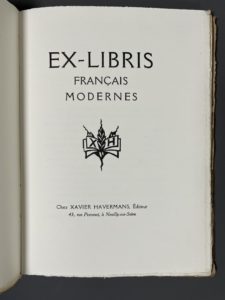 [Ex-libris. Bibliophilie]. HAVERMANS (Xavier, éd.). Ex-libris français modernes / Ex-libris modernes en France. Première - [quatrième-] série. Paris, Xavier Havermans, 1921, 1923, 1926, [1930]. 4 volumes in-8, broché (dos passés un peu salis,...