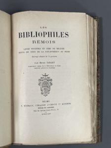[Ex-libris. Bibliophilie]. [Reims]. JADART (Henri). Les bibliophiles rémois, leurs ex-libris et fers de reliure, suivis de ceux de la bibliothèque de Reims. Reims, Michaud, 1894. In-8, III-250 p., 70 fig., demi-basane fauve, dos à 4 nerfs,...