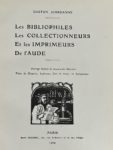 [Ex-libris. Bibliophilie]. [Aude]. JOURDANNE (Gaston). Les bibliophiles, les collectionneurs et les imprimeurs de l'Aude. Paris, Leclerc, 1904 [-1908]. Petit in-4, 293 p., fig., toile simili-serpent vert foncé, dos lisse, auteur et titre dorés,...