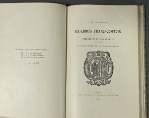[Ex-libris. Bibliophilie]. [Franche-Comté]. MERCIER (J.-B.). Ex-libris franc-comtois. Préf. de L. Quantin. Dijon, l'auteur, 1909. In-8, cart. à la Bradel, pièce de titre au dos. Tirage limité à 150 exemplaires : un des 137 sur papier ordinaire....