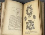 On joint : GAUTHIER (J.), LURION (R. de). Les ex-libris et reliures des bibliothèques comtoises. S.l., s.n., [1893]. In-8, p.[215]-287, 15 planches, cart. moderne à la Bradel, pièce de titre basane en long (papier jauni, dos et plat inf. insolés). Soit 2 volumes. Provenance : Jean Tremblot de La Croix (1893-1964), conservateur à la Bibliothèque de l'Institut de France, historien, héraldiste ; par descendance.