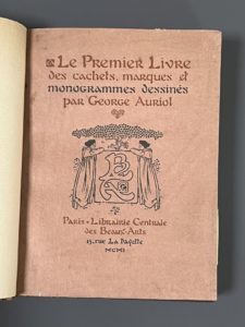 [Typographie. Art du livre]. AURIOL (George). Le premier [second-, troisième-] livre des cachets, marques et monogrammes dessinés par George Auriol. Paris, Libr. Centrale des Beaux-Arts, 1901, 1908 : Floury, 1924. 3 volumes in-12, reliure uniforme...