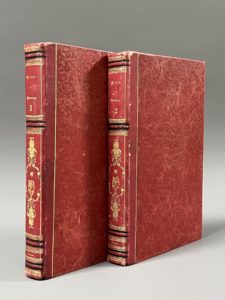 Foelix. Paris, G. de Gonet, Martinon, Vve Janet; Leipzig, Twietmeyer, [1850]. Deux volumes grand in-8, demi-chagrin rouge, dos lisse, titre, tomaison et roulettes dorés, filets noir et or, grand fer rocaille, filet doré aux plats [L. Touchet] (très légers frott., rousseurs, petit mq. de dentelle en marge pl. du voile tome 2). Bel ouvrage illustré d'un frontispice répété et de 31 planches coloriées et aux marges ajourées en dentelle. Une telle « réunion des deux ouvrages avec les gravures à marges de dentelles est assez rare à rencontrer », selon Carteret. (Carteret III, 460; Vicaire V, 770).