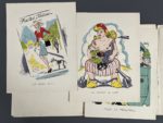 en couleurs, et un feuillet pour le titre et l'avertissement. Par Henri-René Boutigny (1903-1975), illustrateur et caricaturiste tourangeau. On joint 2 feuillets dactylographiés datés de 1943 dont un émanant de la Feldkommandantur de Blois, à propos de la suspicion de certificats de complaisance établis par des médecins français.