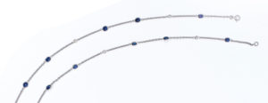 Sautoir en or gris 750 millièmes orné de petits saphirs de forme ovale et de diamants ronds sertis clos alternés.