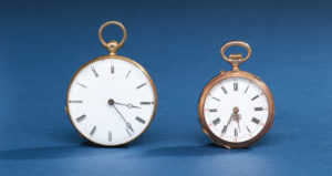 Remontage à clefs pour l'une et remontoir au pendant pour l'autre.