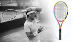 Raquette avec un double autographe authentique sur le grip et sur le cœur, du vainqueur de 22 titres du Grand Chelem dont 14 tournois de Roland-Garros.