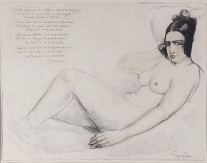 Sucre, pointe sèche, vernis mou, rehaussée, 23,9 x 16, coins arrondis. Epreuve sur Hollande 26,7 x 33,3. Sous passe-partout. 4ème état sur 4 (avec les vers de Baudelaire dans le haut à gauche; Rouir, Catalogue raisonné, 372; seul exemplaire connu avec les vers en rouge). Exemplaire en très belle condition.