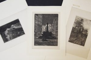 Eau-forte, 12 x 16. Epreuve sur vergé. Marges. Signée «Fçois Maréchal» et titrée au crayon en dessous. Très fraiche. Sous passepartout. □ Joint : F. MARECHAL. La Fontaine. 1894. Eau-forte, 22 x 16. Epreuve sur vergé fort. Marges. Signée «Fçois Maréchal» et titrée au crayon en dessous. Très fraiche. Joint : F. MARECHAL. Coin de Liège. 1932. Eau-forte, 13 x 17. Epreuve sur Arches. Grandes marges. Signée «Fçois Maréchal» et titrée au crayon en dessous. Très fraiche. Sous passe-partout. Joint : F. MARECHAL. Les Vieux chemins. 1892. Eau-forte, 19 x 12. Epreuve sur Hollande. Marges. Signée «Fçois Maréchal» et titrée au crayon en dessous. Très fraiche. Sous passepartout. Joint : F. MARECHAL. Le Soir. 1893. Eau-forte, 11,5 x 11. Epreuve sur Japon. Marges. Signée «Fçois Maréchal» et titrée au crayon en dessous. Très fraiche. Sous passe-partout. Joint : F. MARECHAL. La Place. Eau-forte, 15 x 19. Epreuve sur Arches. Marges. Signée «Fçois Maréchal» et titrée au crayon en dessous. Très fraiche. Sous passepartout.