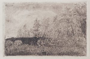 Eau-forte sur cuivre, biseaux, 7,5 x 11,7 sur Hollande (marge visible : 10,5 x 14,5). 2ème état sur 2 (avec la signature gravée -Taevernier 76). Signée et datée «James Ensor. 1889» au crayon en dessous à droite. En belle condition. Sous verre et passepartout à biseau doré, dans un cadre orné doré.