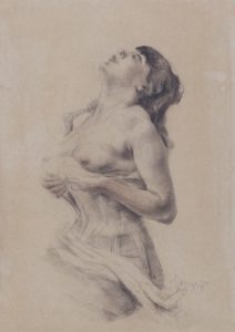 Dessin au crayon, 40 x 28,5. Signé et daté «Dupagne 1914» en bas à droite. En belle condition. Sous verre et passe-partout, baguette dorée. Rare et intéressant dessin des débuts de l’artiste (il était sorti de l’Académie de Liège en 1911 -où il devint professeur).