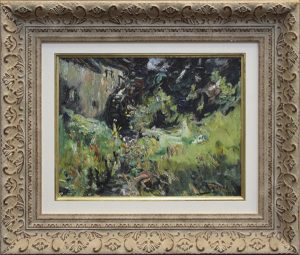 Huile sur panneau, 29 x 37. Signée et datée «A. Jamar. 1931» en bas à droite. Dans un cadre orné à passe-partout de soie et biseau doré. Peintre expressionniste né à Liège en 1870 et mort à Saint-Gilles (Bruxelles) en 1946. D’abord juriste, il suit les cours de l’Académie de Liège. Il voyage beaucoup (Arto).
