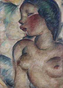 Huile sur carton, 37 x 28. En très belle condition. Dans un cadre vieil or. Ce tableau est reproduit dans Michel Pirotte et Jean Guy Gilles, Auguste Mambour. L’odyssée d’une reuvre en trois dimensions, p. 280.