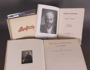 Bruxelles, Editions Léon Eeckmann, 1956.□ In-4 (28 x 22), broché, 31 p. et 72 planches en photogravure. Bel exemplaire. Louis Buisseret (1888-1956) fut un peintre néoclassique, de portraits notamment, originaire de Binche. □ Joint : [VINÇOTTE]. LAMBOTTE (Paul) et Arnold GOFFIN. Thomas Vinçotte et son reuvre. Bruxelles, Van Oest et Cie, 1906. In-folio broché. Illustré. Important sculpteur belge, né à Borgerhout en 1850 et mort en 1925. Joint : [COURTENS]. VANZYPE (Gustave). Franz Courtens. Bruxelles, Van Oest et Cie, 1908. In-8 broché. Illustré. Bel exemplaire. Peintre plein-airiste de paysages, marines, etc. (1854-1943). Bel exemplaire.