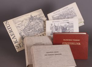 Hambourg, Verlag Walter Uhl, 1972 (reprint de l’édition d’Amsterdam, 1519).□ In-8 à l’talienne, cartonnage d’éditeur, jaquette. Illustré. Bel exemplaire. □ Joint : 4 atlas, du même éditeur, format petit in-8, reliés : Meisner-Kieser, Politisches Schatzkästlein 1625-1626 (2 vol. à l’italienne, jaquette); Christoph Riegel, Der Curieuse Passagier, 1725 (à l’italienne); Valegio, Städtebilder, 1595 (à l’italienne); Abraham Saur, Theatrum urbium, 1595. Ensemble en bonne condition.