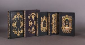 Paris, Didier, Libraire-Editeur, Aubert et Cie, Editeurs, 1844.□ Grand in-8, plein chagrin vert wagon, plats et dos ornés de fers romantiques dorés, tranches dorées. Reliure en excellente condition. Rousseurs. □ Joint : CHASLES (Philarète). Révolution d’Angleterre. Charles Ier, sa cour, son peuple et son parlement [...] XVIII gravures sur acier. Paris, Madame Ve Louis Janet, Libraire-Editeur, s. d. Grand in-8, cartonnage de papier gaufré à décor de fers romantiques dorés, tranches dorées. Bon exemplaire. Joint : FOA (Eugénie). Les Soirées du vieux château. Paris, Desforges, Libraire, s. d. In-8, cartonnage de papier gaufré noir à décor or, vert, bleu, rose et blanc, tranches dorées, gardes de papier jaune. Illustré de 6 lithographies horstexte. Bel exemplaire. Joint : MÖRING (Michel). Les Soirées de mon oncle. Souvenirs et récits de voyages. Paris, A. Desessert, Editeur, s. d. In-8, cartonnage de papier gaufré noir à décor or, vert, bleu, rouge, tranches dorées, gardes de papier jaune. Illustré. Joint : BLANCHARD (Pierre). Le Plutarque de la jeunesse, ou Abrégé des vies des plus grands hommes de toutes les nations. Nouvelle édition. Paris, Belin-Leprieur et Morizot, Editeurs, (1847). In-8, cartonnage de papier gaufré noir à décor doré, tranches dorées, gardes de papier jaune. Illustré.