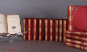 Paris, E. Girard et A. Boitte, 1894. □ 41 vol. in-8 (22,5 x 14), en cartonnage rouge d’éditeur, décor doré au dos, et noir aux plats. Le sous-titre porte : «Romans - contes - nouvelles -poésies - voyages - histoire-sciences - art». La lecture actuelle couvre les 26 premiers vol., la lecture rétrospective les 19 suivants, et le quarante-et-unième et dernier constitue la table, illustrée de portraits, permettant de retrouver titres, auteurs et genres des textes. Complet. Petits accidents à quelques coiffes, sinon ensemble en bonne condition.