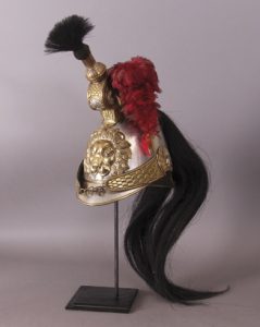 Complet (cimier en brosse et queue, plumet), sans la coiffe intérieure. Pièce en belle condition.