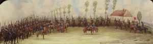 Bataille de Haelen. Remise de l’étendard au 5ème lanciers par le général de Witte. 12 aoüt 1914.