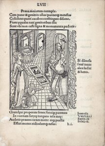BMC, III, 795. — Hain, 3746. — Goff, B1086. — GW 5054. — Lonchamp, n°433. — Pellechet, 2820. — Proctor, 7776. Première édition latine de la fameuse œuvre satirique du juriste strasbourgeois Sébastien Brandt (1458-1521), connue sous le nom de Nef des fous, traduite par le poète de Maximilien I d’Habsbourg, Jacob Locher. CE PRÉCIEUX ET BEL INCUNABLE BÂLOIS est imprimé en grands caractères romains et gothiques, etporte lamarque typographique de son imprimeur à la fin. Il est illustré d’un bois sur le titre et de 116 figures dans le texte, dus à Albrecht Dürer, représentant les folies humaines. La plus connue de toutes est celle montrant un bibliomane dans son cabinet. Ex-libris gravé de l’architecte Pierre Henri Gelis-Didot, actif à Paris entre 1882 et 1895. Quelques feuillets plus courts provenant d’un autre exemplaire ; 2 feuillets sont en fac-similé. Trous et galeries de vers comblés sur le titre (abîmant le texte et le bois de celui-ci) et dans la marge de plusieurs cahiers. Titre réemmargé, restauration sur le bord des feuillets 66 (perte de lettres aux manchettes de celui- ci) et 129.