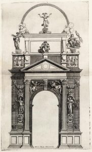 de l’époque. Cicognara, n°1399. — Ruggieri, n°1885. — Vinet, n°790. Édition originale de ce très beau livre de fête célébrant le retour du cardinal Gian Francesco Morosi (1537-1596) à Brescia en 1590, après un séjour diplomatique à la cour de France. L’illustration se compose d’un titre-frontispice, 11 planches de monuments, un plan à double page et une planche dépliante, le tout gravé en taille-douce par Leon Pallavicino et Giacomo Franco d’après les dessins de l’architecte Giulio Todeschino et le peintre Tomaso Buona, tous deux originaires de Brescia. Cachet à l’encre rouge répété. Le titre-frontispice est aquarellé postérieurement. Quelques rousseurs, large mouillure inférieure touchant plusieurs planches et un feuillet de texte, avec réparation au verso du titre-frontispice.