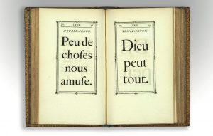 et roulette dorés autour des plats, dos lisse orné, pièces de titre et de tomaison noires, grecque dorée intérieure, tranches dorées (Bozerian jeune). Première édition de ce célèbre ouvrage, dont seules deux parties, sur les quatre annoncées, virent le jour. Dans la première, l’érudit Pierre-Simon Fournier (1712-1768), issu d’une famille de typographes en activité depuis le XVI e siècle, décrit avec précision les formes de caractères et les méthodes de gravure et de fonte. La seconde rassemble des caractères typographiques. L’édition est ornée de 2 frontispices gravés en taille-douce par Fessard d’après De Sève et Gravelot, et 16 planches dépliantes gravées sur cuivre. Exemplaire bien relié par Bozerian le jeune au début du XIX e siècle. Quelques légères rousseurs. Charnières, coiffes et coins frottés.