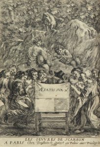 Scarron (Paul). Œuvres diverses (1648-1651). Ensemble 7 ouvrages en un volume in-4, veau granité, double filet doré, dos orné, tranches marbrées (Reliure de l’époque).