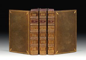 des mêmes pièces d’armes dans les caissons, roulette intérieure, tranches rouges (Reliure de l’époque). Cohen, 984. Édition de la traduction de la savante Madame Dacier, illustrée d’un frontispice, d’un fleuron de titre, d’une vignette en tête de la dédicace et de 47 jolies figures dans l’esprit classique, gravées au simple trait par Bernard Picart. Joli exemplaire, relié en maroquin à l’époque, aux pièces d’armes (trois fusées) d’un membre de la famille Bouthillier de Chavigny, peut-être Denis-François (1665-1730), évêque de Rennes, puis de Troyes en 1678. Il augmenta considérablement l’importante bibliothèque familiale, et a laissé de nombreux manuscrits à la bibliothèque de Troyes.