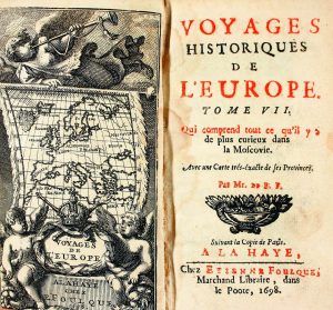 Foulque, 1698. Ofrecemos 4 tomos en 12º (de los 8 que consta la obra), encuadernados en piel de época, con los lomos y cantos cuajados (algo deteriorados). IV: Royaumes d´Angleterre, d´Irlande, et d´Ecosse. Frontispicio, 7 h. + 526 p. y un mapa plegado: V: Hollande et dans le reste des Provinces Unies. Frontispicio, 4 h. + 334 p. (falta en mapa); VI: L´Empire d´ Allemagne 6 h.`+ 404 p. y 1 mapa plegado; VII: La Moscovie. Frontis + 7 h. + 232 p. (falta el mapa). Según Foulché - Delbosc 111 y Palau 124850, el autor es Claude Jordan, por lo que Mr. de E.F. es Etienne Foulque, sólo el editor o impresor.