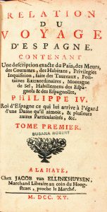 1715. (VIAJES-ESPAÑA). AULNOY, MARIE-C., CONTESSE D´: RELATION DU VOYAGE D´ESPAGNE. Contenant: une description exacte du Pais, des Meurs, des Coutumes, des Habitants, Privilegies, Inquisition, faite des Taureaux, Fontaines Extraordinaires,...