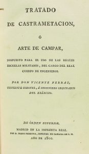 1800. (MILITAR). FERRAZ, VICENTE: TRATADO DE CASTRAMENTACION O ARTE DE ACAMPAR. Madrid: Imp. Real, 1800. 8º mayor. 489 p. Ilustr. con 20 láms., 2 estados y 2 mapas plegados. Enc. en plena piel, tejuelo, hilos dorados en los planos.