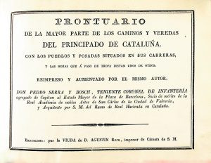 1814 ca. SERRA Y BOSCH, PEDRO: PRONTUARIO DE LA MAYOR PARTE DE LOS CAMINOS Y VEREDAS DEL PIRNCIPADO DE CATALUYÑA. Con los pueblos y posadas situados en sus carreras y las horas que a paso de tropa distan unos otros. Barcelona: Por la Viuda de D....