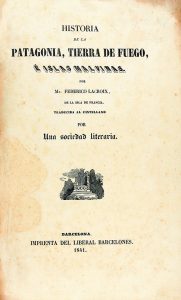 1841. (VIAJES). LACROIX, FEDRICO: HISTORIA DE LA PATAGONIA, TIERRA DE FUEGO E ISLAS MALVINAS. Barcelona: Imp. del Liberal Barcelones, 1841. 4º menor. 70 p., 1 h. Ilustr. con 11 láms. y un mapa plegado. Rústica provisional, lomo partido.